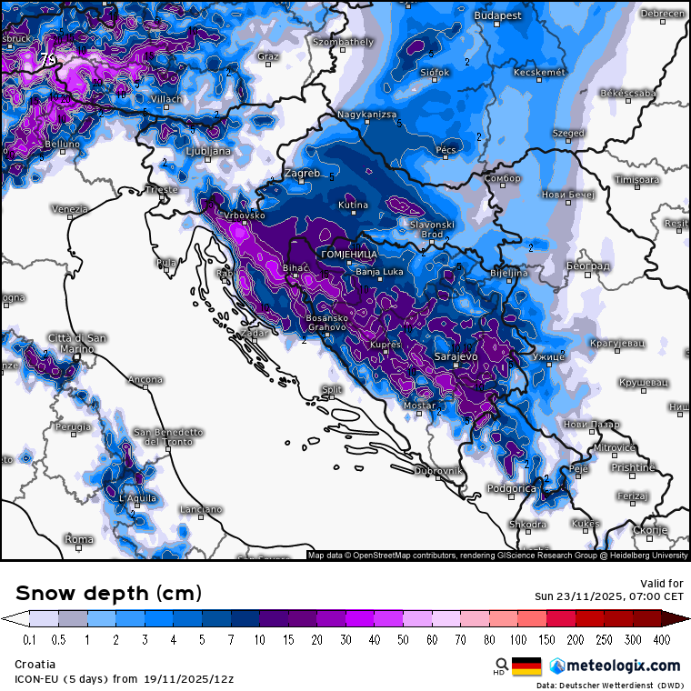 Nakon toplog četvrtka sledi novo zahlađenje uz veliku mogućnost za prve pahulje (Mapa: meteologix.com)