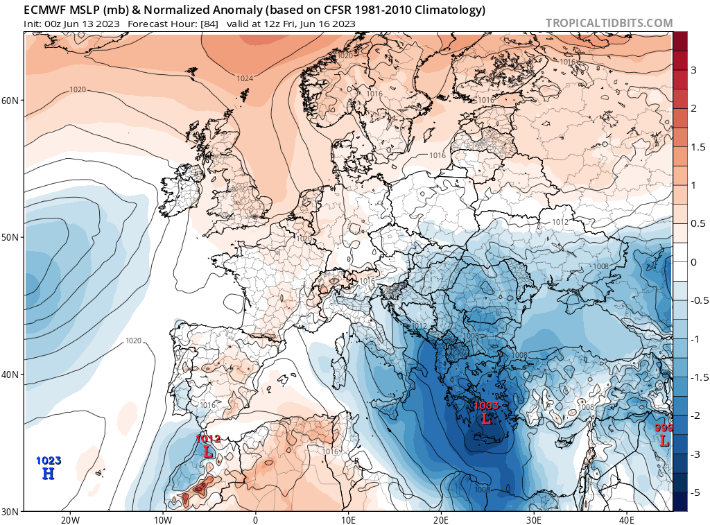 Ciklon koji će uticati na vreme od četvrtka prema ECMWF modelu – položaj u petak (Source: tropicaltidbits.com)