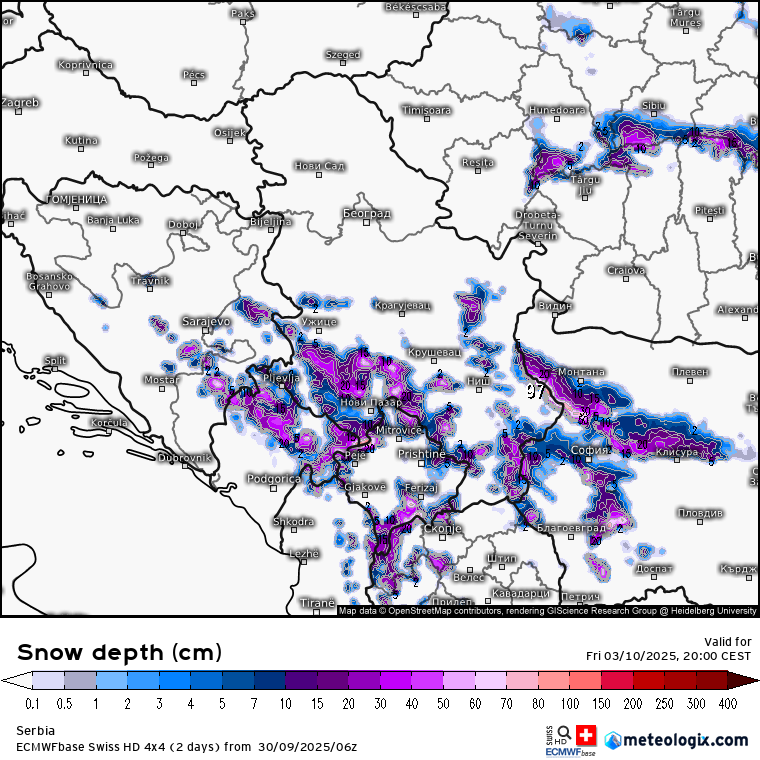 Dakle, sve je izvesnije da će u višim planinskim predelima pasti između 25 i 50cm snega, a u nižim planinskim predelima između 15 i 25cm tokom dva dana.