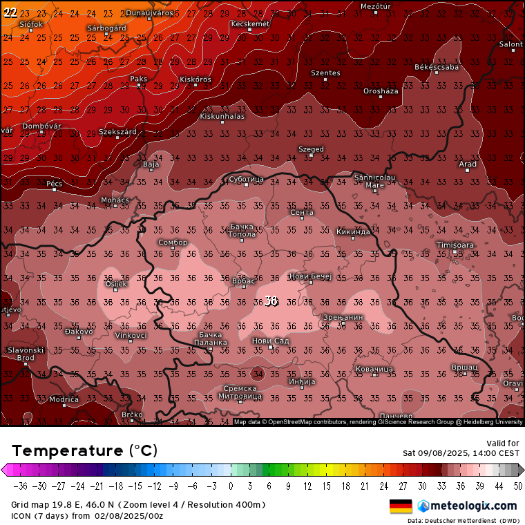 U četvrtak će se maksimalne temperature kretati između 28 i 31°C, što je još uvek prijatno toplo za prvu polovinu avgusta, dok će od petka uslediti osetniji porast temperatura. Tako će se već u petak 8. avgusta maksimalne temperature kretati između 33 i 35°C, a u subotu 9. avgusta vrlo verovatno i između tropskih 36 i 38°C.
