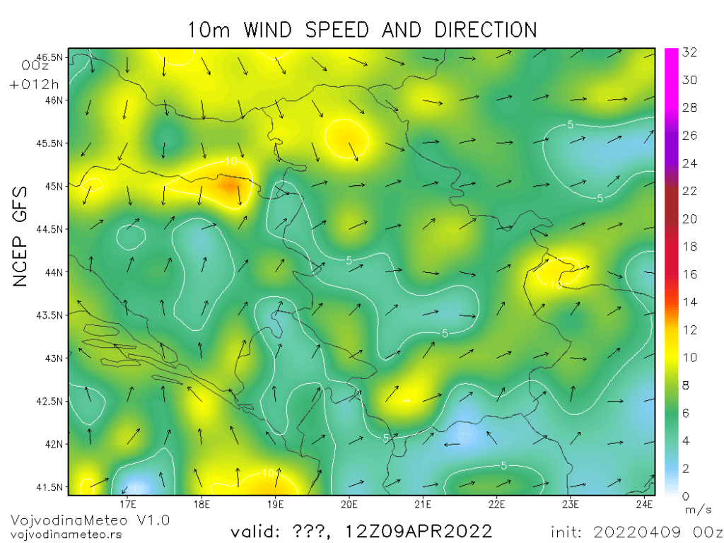 Danas do kraja dana se očekuje pretežno do potpuno oblačno vreme, u drugom delu dana sa povremenom kišom. Uglavnom se očekuje 3-6mm vodenog taloga, ali bi ponegde moglo pasti i do 10mm, solidna količina. Maksimalne temperature će uglavnom biti dostignute već do 13h, i kretaće se između 17 i 21°C. U drugom delu dana duvaće umeren do jak severozapadni vetar, prolazno i sa udarima olujne jačine!