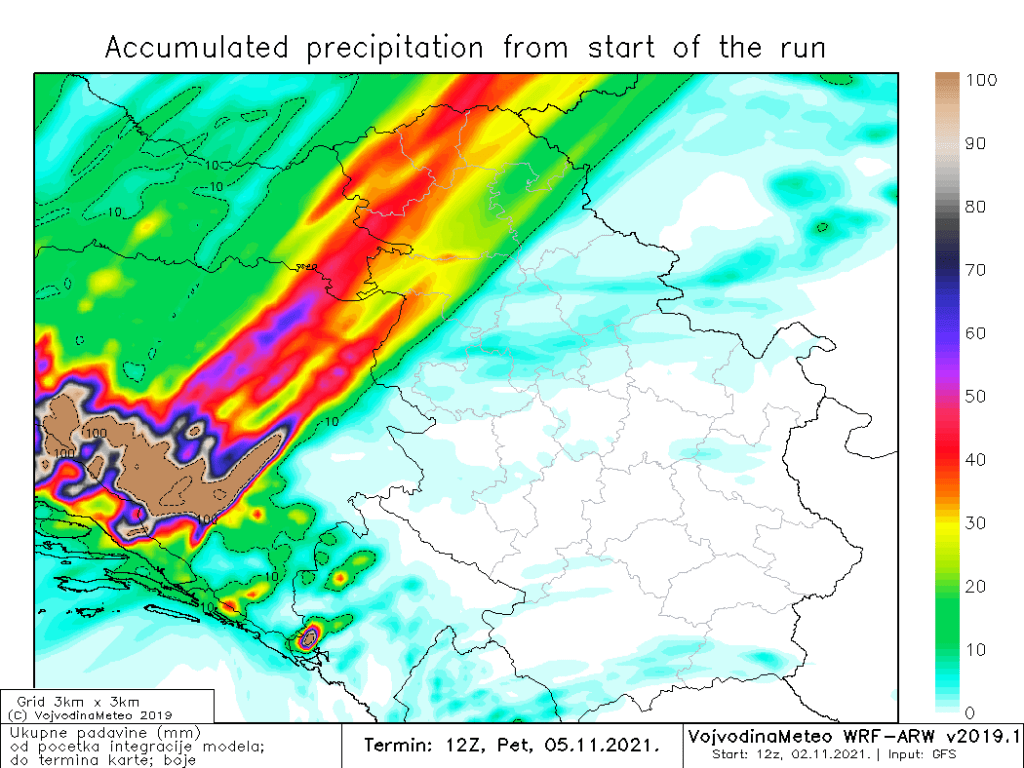 Tako u naredna četiri dana područje Vojvodine može da računa na 20 do 30mm vodenog taloga u proseku, ali bi na lokalnom nivou moglo da se akumulira čak i više od 50mm kiše! Još uvek nije izvesno kako će se ova „pruga“ padavina tačno postaviti, i koji deo Vojvodine će dobiti najviše kiše, ali pratite našu trodnevnu prognozu i objave na Facebook-u ili Twitter-u za više svežih informacija.