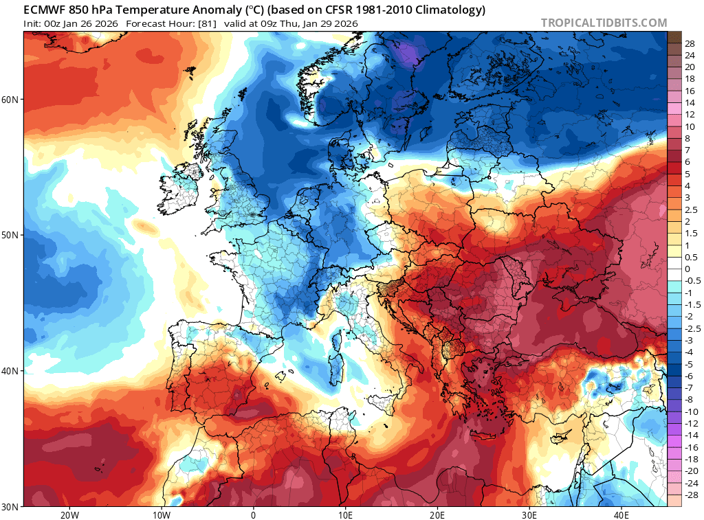 Početkom sledeće sedmice (2-3. februar) nas očekuje vrlo verovatno nastavak slabih jutarnjih mrazeva i dnevnih temperatura ispod 5°C, međutim trenutno je šansa da dođe do ponovonog otopljenja veća, nego da ponovo imamo konkretniju zimu i snežne padavine u prvoj dekadi februara. Ipak, treba napomenuti da sve karte ostaju otvorene još uvek kada je prva dekada februara u pitanju, jer hladan vazdušna masa (za razliku od nekih prethodnih zima) neće biti daleko od nas.