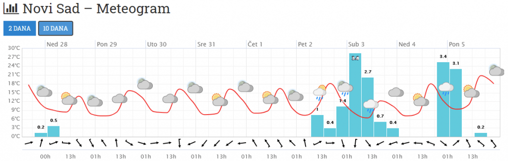 Meteogram za Novi Sad narednih 10 dana (ECMWF)