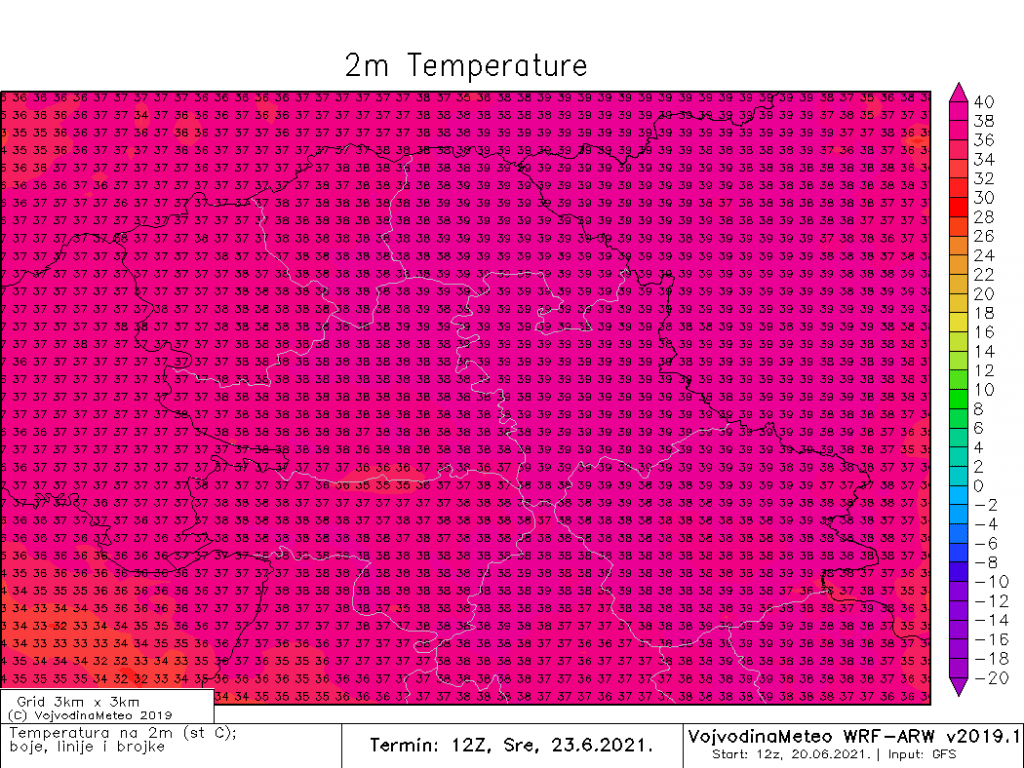 Tokom većeg dela predstojeće sedmice očekuje nas tropski toplo vreme, sa svakodnevnim temperaturama iznad 30°C, a u većini dana i sa dnevnim temperaturama iznad 35°C. Najtoplije će biti u sredu i četvrtak, 23 i 24. juna, kada će se maksimalne temperature u Vojvodini kretati između 36 i 39°C. Manji pad temperatura očekuje se u petak, eventualno subotu.