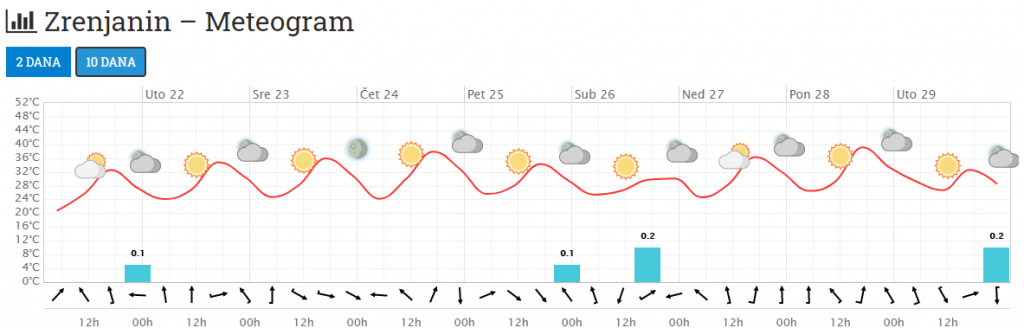 Meteogram za Zrenjanin 10 dana (ECMWF)