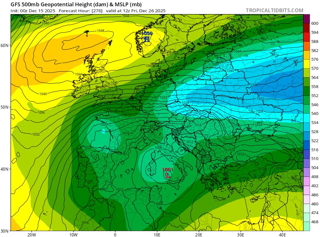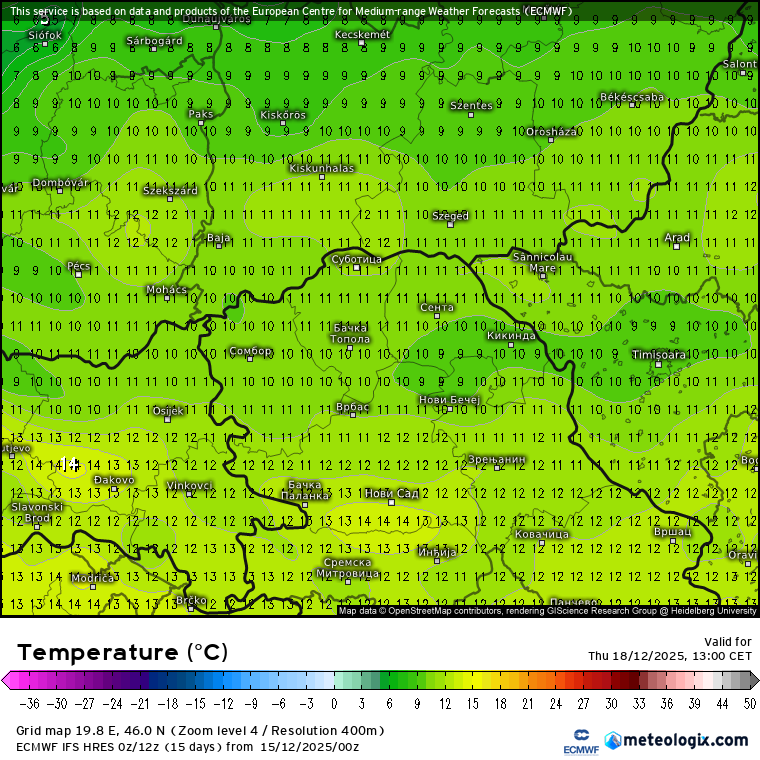 Obzirom na daljinu ovog termina (7+ dana), ovo treba uzeti sa rezervom, i još uvek samo kao opciju. U svakom slučaju, krećemo sa ka tome da će konačno biti narušena anticiklonalna situacija iznad regiona (stabilno vreme), a nastupila bi ciklonska cirkulacija, uz promenljivu oblačnost, sunčane intervale, i nove padavine. Vrlo je dakle moguće da ćemo imati padavine oko 25. decembra, ali da li će one biti u formi kiše, susnežice, ili većinski u obliku snega – presudiće detalji, koje ćemo saznati krajem ove sedmice i kada ćemo mi izaći sa detaljnijom analizom.