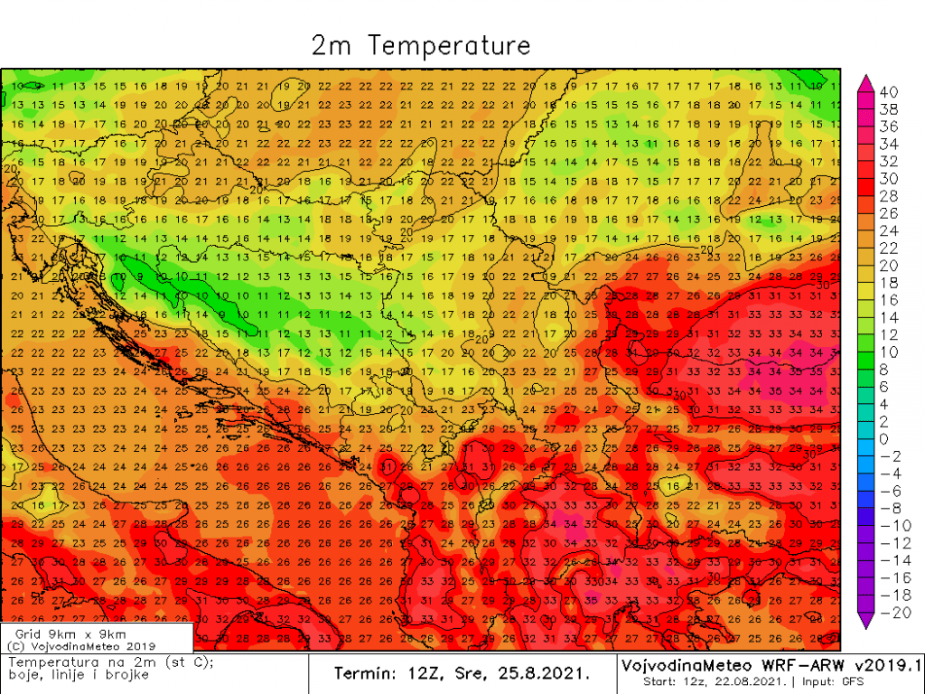 U ponedeljak u drugom delu dana očekuje nas promena vremena koja će u večernjim satima i u noći ka utorku usloviti kišu, i ređu pojavu pljuskova sa grmljavinom. Uz umeren do jak severozapadni vetar doći će do priliva hladnije vazdušne mase. Od utorka pa do kraja nedelje, maksimalne temperature uglavnom neće prelaziti 25°C, a takav niz dana sa temperaturama ispod 25°C, nismo imali još od prve polovine juna! Treba istaći i da su to temperature ispod proseka za kraj avgusta.